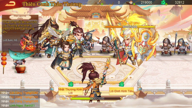 • Trong Thiên Canh Thần Thương có thể tốn Kinh Lôi Thương hoặc Ngọc Bích để giao đấu với võ tướng, hoàn thành Nhiệm Vụ Ngày và Thành Tựu có thể nhận Kinh Lôi Thương.