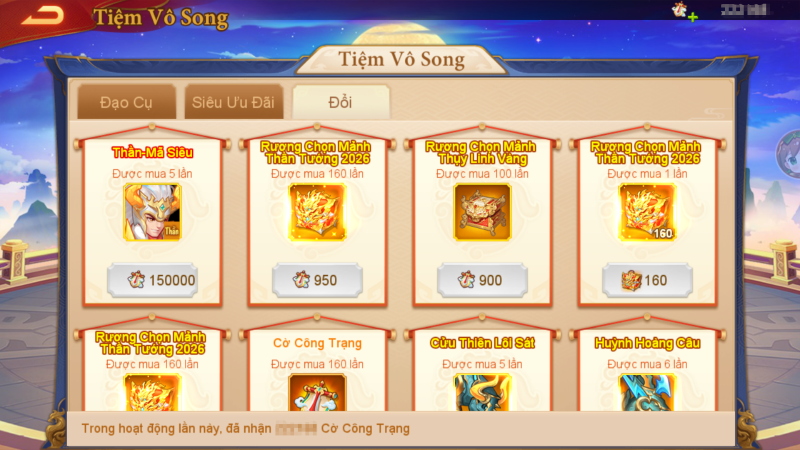 Hoạt động kéo dài 3 ngày, ngày thứ 4 chỉ có thể nhận thưởng và mua đạo cụ.