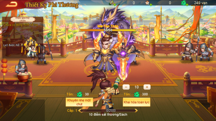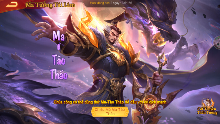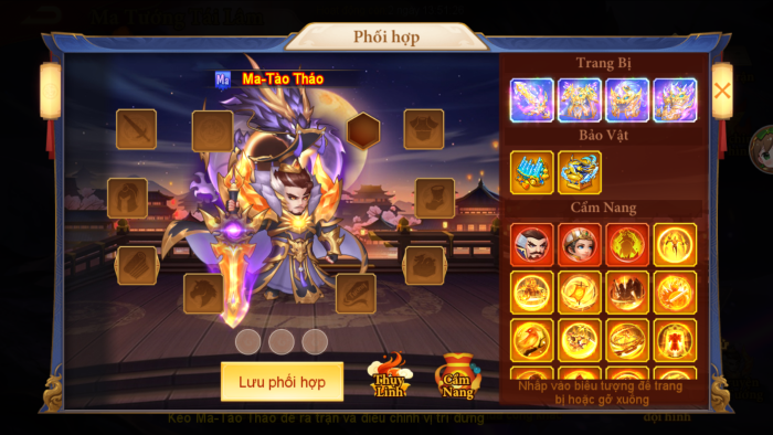 • Chúa công có thể chiêu mộ và dùng thử Võ Tướng Ma-Tào Tháo, chọn đội hình thử nghiệm để đối chiến với kẻ địch mạnh.