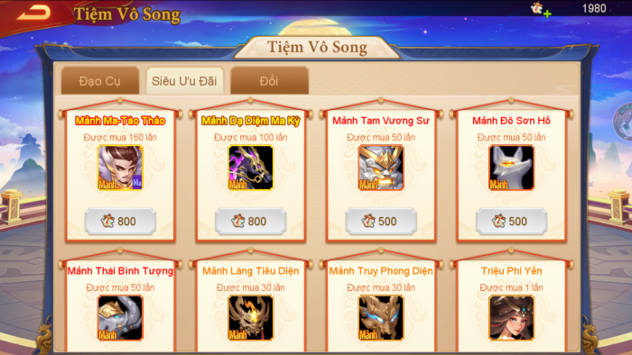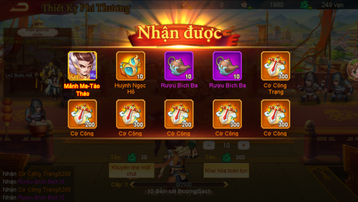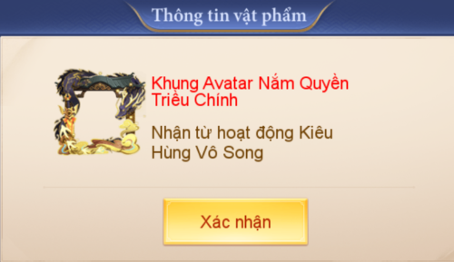 • Chúa công có xác suất nhận Phục Long Lệnh trong Kiêu Hùng Vô Song, tốn Phục Long Lệnh có thể tham gia Rồng Thần May Mắn để lật bài nhận đạo cụ.