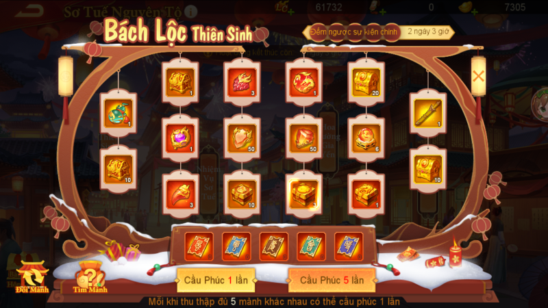 • Mỗi khi tiêu hao 1 bộ Mảnh Bách Lộc là có thể tham gia rút thưởng.