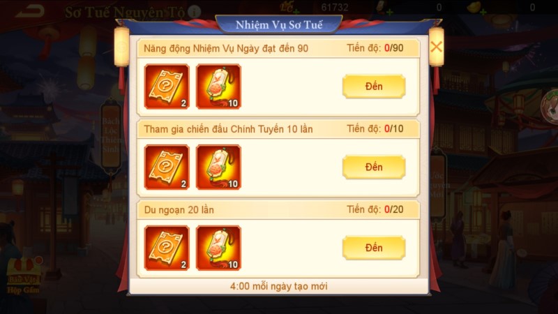 • Chúa Công hoàn thành nhiệm vụ để nhận phần thưởng, làm mới vào lúc 4:00 mỗi ngày, hãy kịp thời nhận nhé.