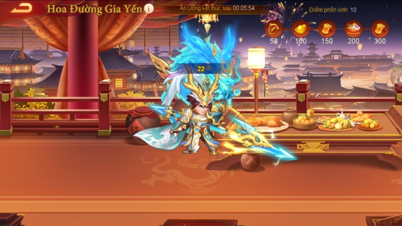 • Vào phút thứ 3 sau khi yến tiệc bắt đầu sẽ diễn ra hoạt động trả lời câu hỏi tại chỗ. Trả lời đúng càng nhiều câu, số lượng rương báu mở khóa được càng nhiều.