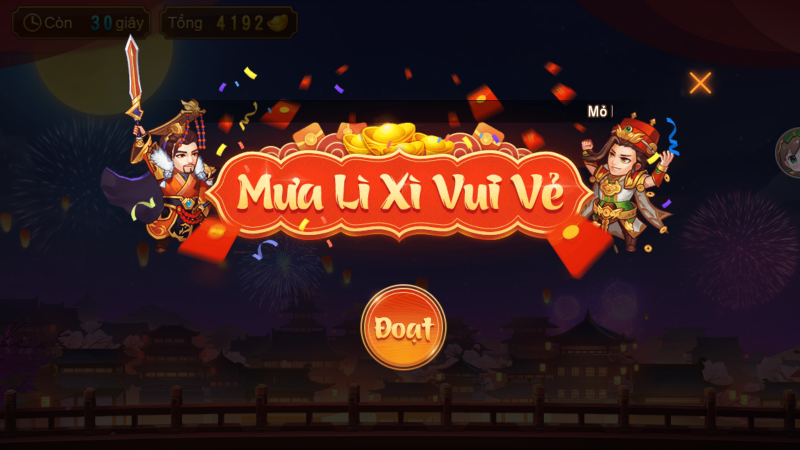 Trong thời gian diễn ra sự kiện, vào lúc 12:00 và 19:00 mỗi ngày, hệ thống sẽ mở "Mưa Lì Xì", mỗi đợt kéo dài 10 phút, Chúa Công nhất định đừng bỏ lỡ nhé. Trong thời gian này, Chúa Công có thể săn các bao lì xì rơi xuống tại giao diện Mưa Lì Xì để nhận thưởng Nguyên Bảo, giá trị Nguyên Bảo nhận được là ngẫu nhiên đó nha.
