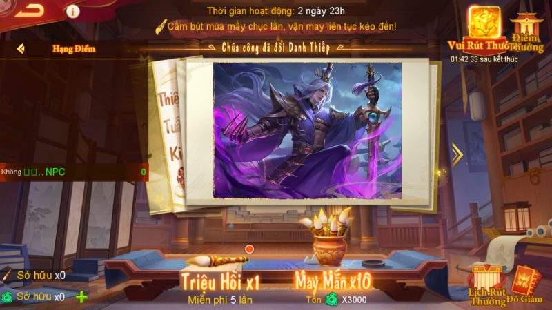 • Mỗi ngày được tham gia chiêu mộ miễn phí 5 lần, lượt quay miễn phí hồi sau 60 phút.