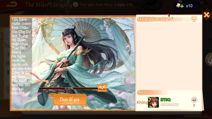 • Khi tiến độ Truyện Ký Nhân Vật đạt 100%, sẽ phát thưởng qua thư dựa theo hạng đóng góp.