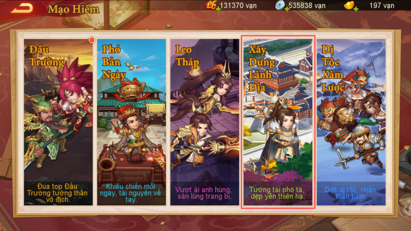 2. Tính năng mới: Xây Dựng Lãnh Địa
