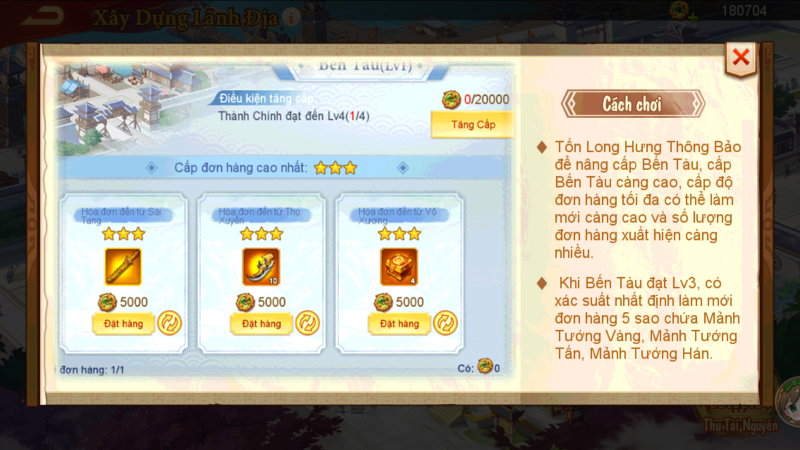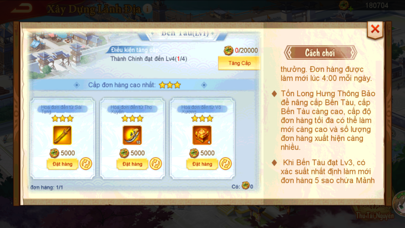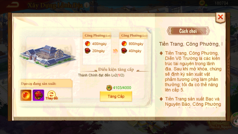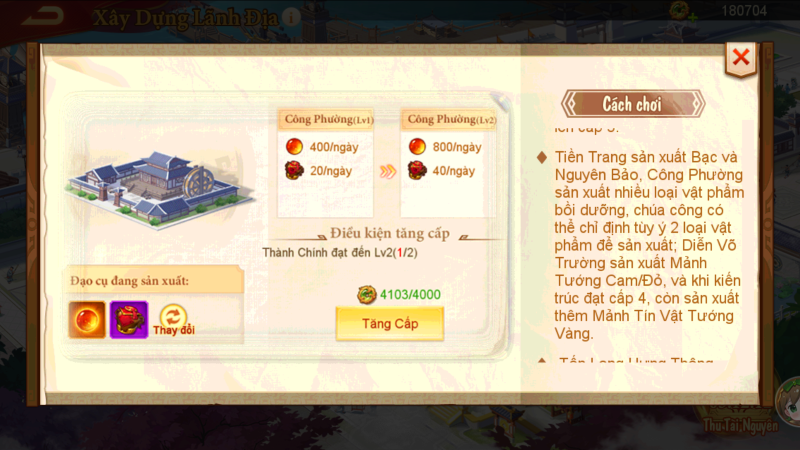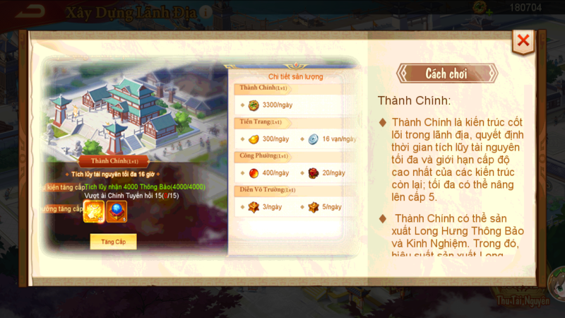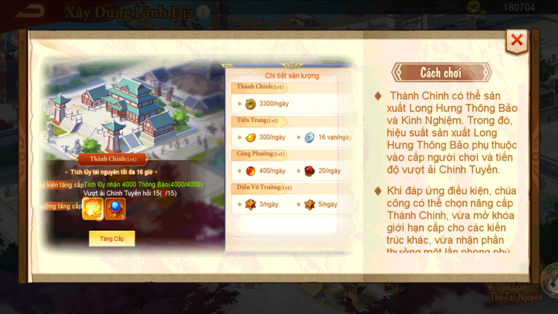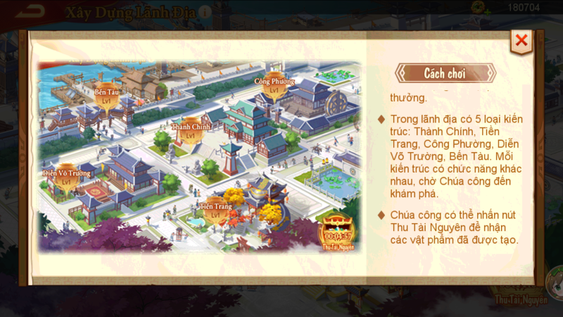 • Xây dựng kiến trúc (Thành Chính, Tiệm Tiền, Công Xưởng, Diễn Võ, Bến Tàu) để tăng hiệu suất sản xuất và nhận quà treo máy.